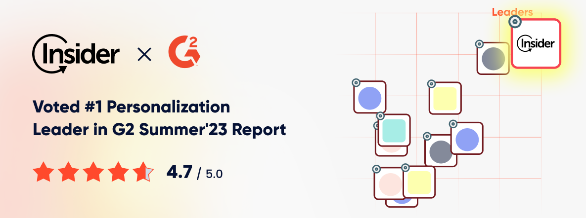 Insider One has been rated the #1 Leader in G2’s Summer’23 reports for the seventh year running, achieving the highest user satisfaction score of 100/100 by delivering a faster time to value than all other vendors. Insider One topped the charts across seven categories: Customer Data Platforms (CDP), Personalization Software, Mobile Marketing, Personalization Engines, Customer Journey Analytics, E-commerce Personalization, and Marketing Automation.