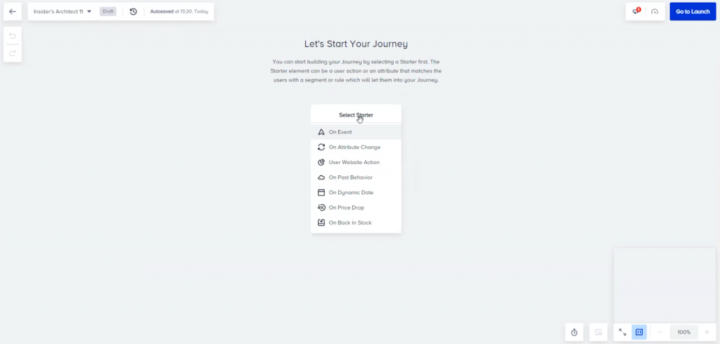 Besides just getting access to a plethora of channels, Insider One’s customer journey builder lets you create and automate personalized campaigns across these touchpoints.The process is controlled via a simple drag-and-drop editor that anyone can use. You can also leverage one of our many premade templates to launch campaigns as quickly as possible.