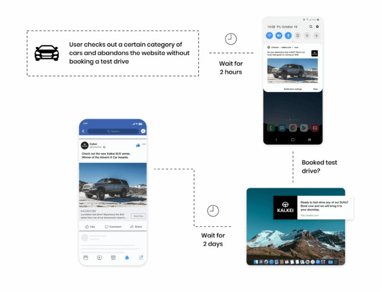 Think of a visitor to a car manufacturer’s website who drops off before booking a test drive. It is in the brand’s best interest to bring the user back to complete the test-drive booking.