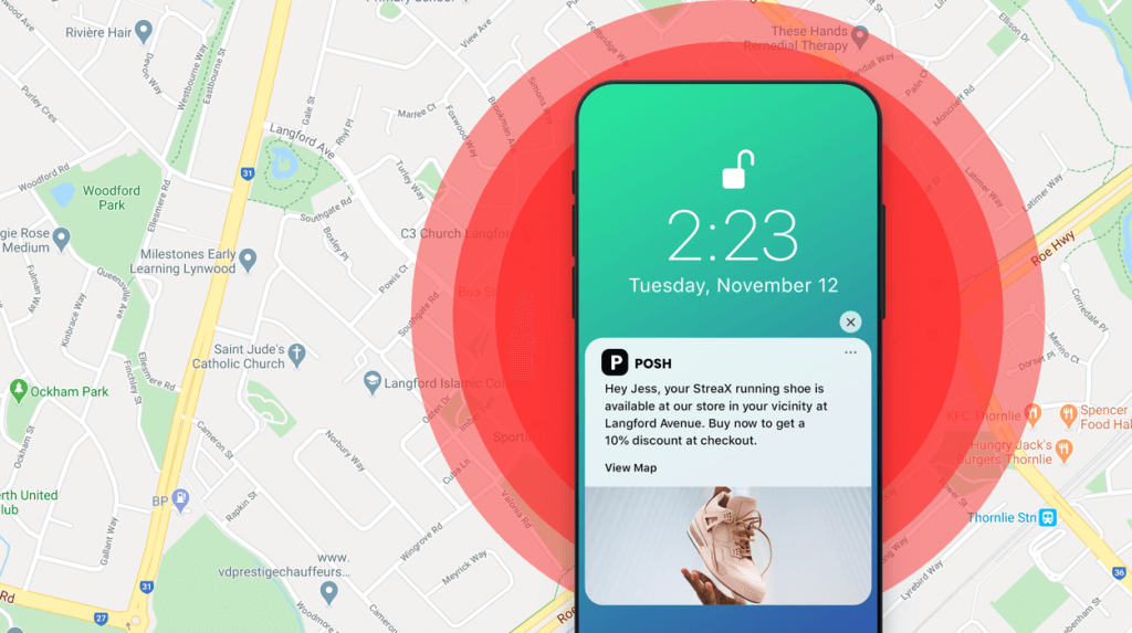 Marketers can leverage geofencing technology to send location-specific, contextual, and timely data-driven content to customers. Research has shown that 69% of users are happy to share their location information with apps if they are given relevant notifications.