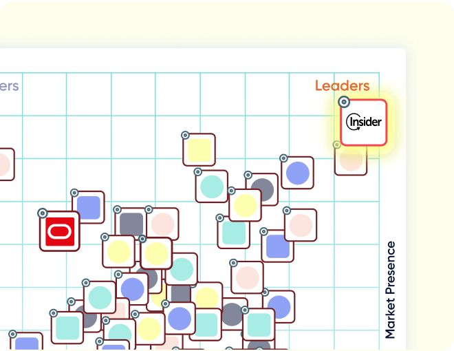 Insider is ranked as the #1 platform in Personalization, CDP, Mobile Marketing, Customer Journey Analytics, E-commerce Personalization, and Marketing Automation on G2’s Fall’23 Report. We’ve achieved the highest user satisfaction score of 100/100, compared to Oracle’s score of 45/100