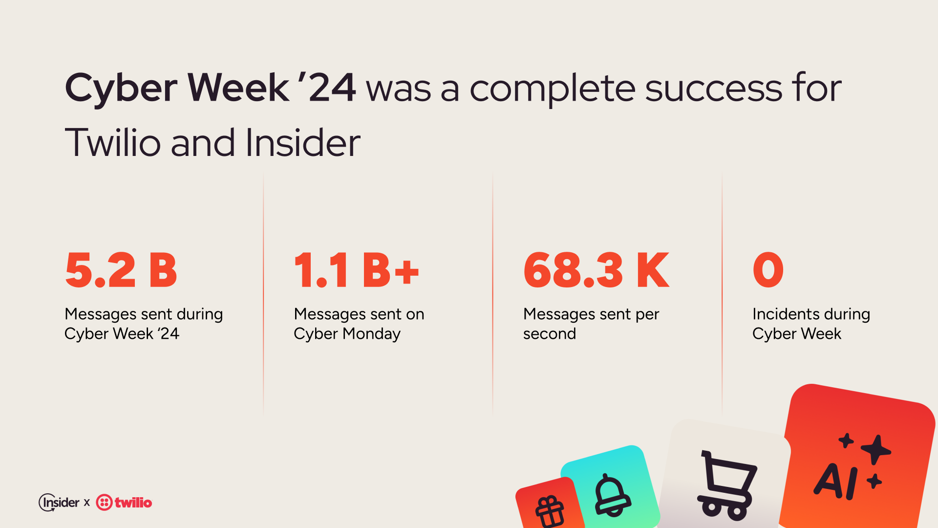 And the results speak for themselves: Twilio sent 5.2 billion messages during Cyber Week last year. Of these messages, 1.1 billion of them were sent on Cyber Monday alone.