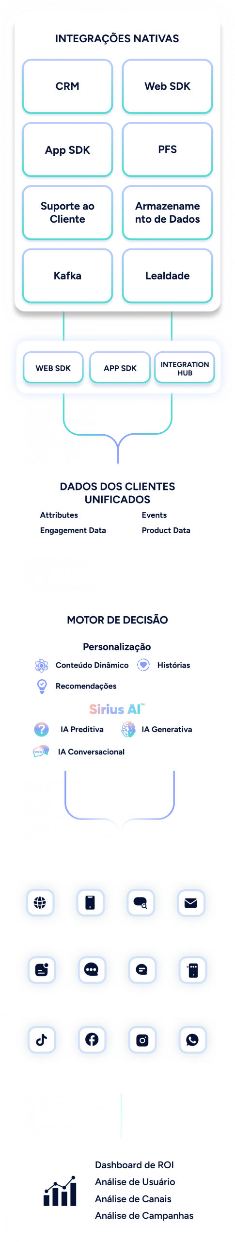 Mantenha os clientes engajados com campanhas personalizadas e oportunas, que se adaptam em tempo real aos canais preferidos de cada usuário para gerar o máximo impacto. Aumente as conversões tornando cada interação fluida e recompensadora.