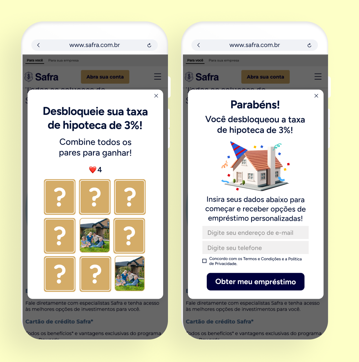 Engaje visitantes anônimos com alta intenção de conversão, antes do login, por meio de templates gamificados e otimizados para mobile, como roleta da sorte ou jogo da memória. Coleta dados essenciais logo no início, reduza os custos de aquisição e crie a base para um engajamento personalizado.