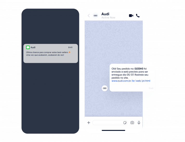 Use notificações Web Push, WhatsApp, Email, SMS e RCS.