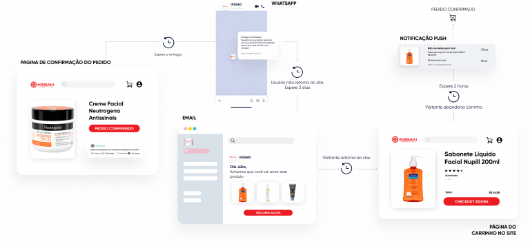 Use notificações Web Push, WhatsApp, Email, SMS e RCS.