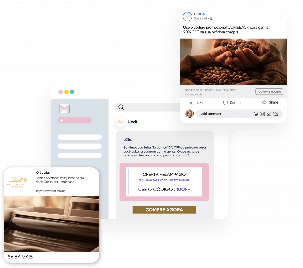 Estamos aqui para ajudar a Lindt a aumentar seu lucro, crescimento e confiança por meio da entrega ao cliente de uma experiência atraente, conectada e personalizada em todos os seus canais digitais.