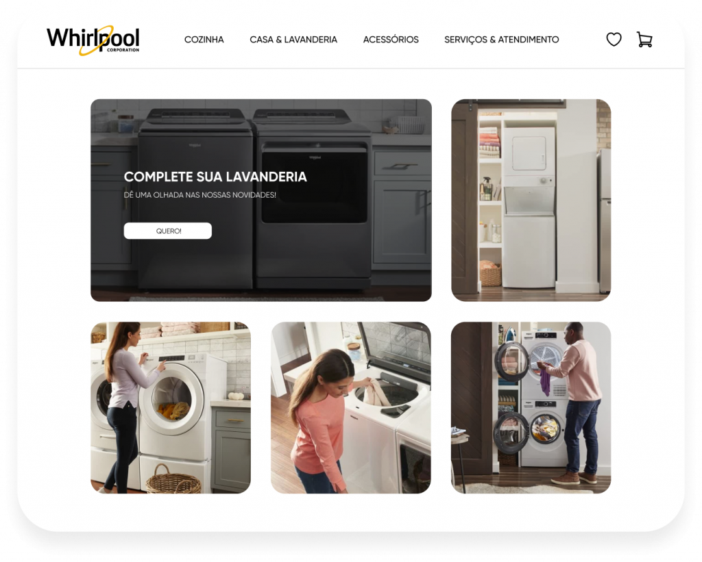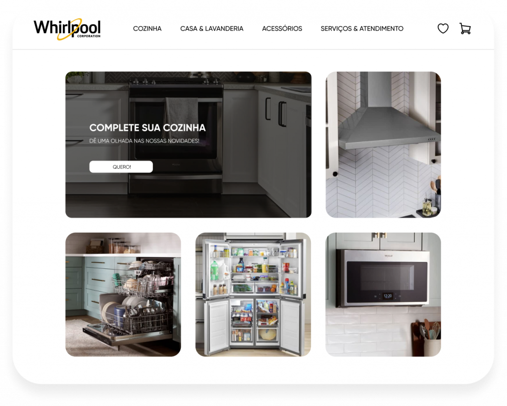 Estamos aqui para ajudar a Whirlpool a aumentar seu lucro, crescimento e confiança por meio da entrega ao cliente de uma experiência atraente, conectada e personalizada em todos os seus canais digitais.