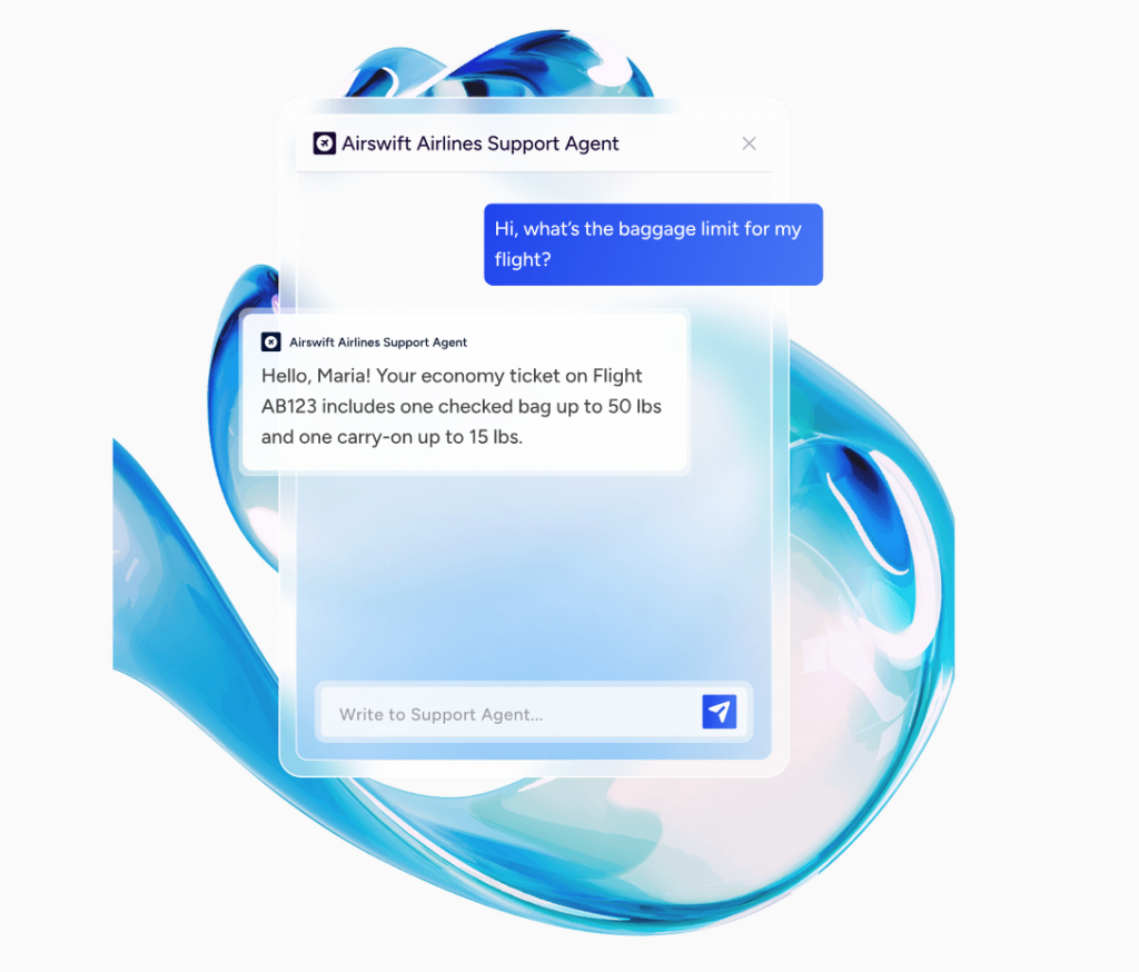 2. The Support Agent uses real-time data to answer questions and solve customer problems on the spot. Its answers are emotionally intelligent, offering reassurance and solutions based on the context. It can also be reactive or proactive, depending on the best way to solve the problem.