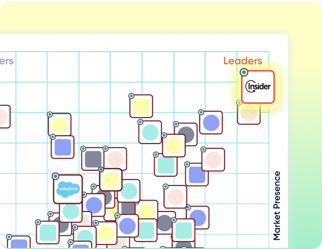Insider is ranked as the #1 platform in Personalization, CDP, Mobile Marketing, Customer Journey Analytics, E-commerce Personalization, and Marketing Automation on G2’s Fall’23 Report. We’ve achieved the highest user satisfaction score of 100/100, compared to Salesforce’s score of 40/100.