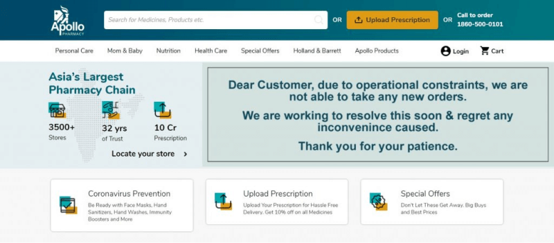 Make sure your website has a clean and simple layout for this with clear instructions on how to upload a prescription and make payments. This is how Apollo does it.