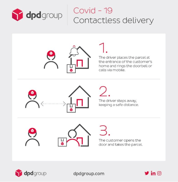 For online orders and deliveries, let your customers know that you have a well-planned contactless curbside pick-up scheme in place at your store, or a doorstep drop-off to ensure the safety of your customers. Global delivery brand DPD Group, reassures customers this way-