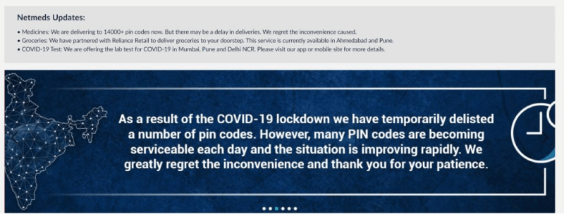 If your online pharmacy offers additional value-adds such as home sample collection for lab tests, or free online consultations—let your visitors know through carousel banners on your site. Since COVID-19 is a hot topic, most often other medical requirements don’t get the attention they deserve.