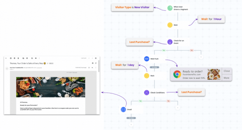 Are you experiencing an increase in your new user base with an increase in traffic? No problem! Encourage users across multiple channels and nudge them towards making their first purchase. You can build a journey and put your new users in an onboarding flow and engage with them on all digital touchpoints to guide them towards placing and order.