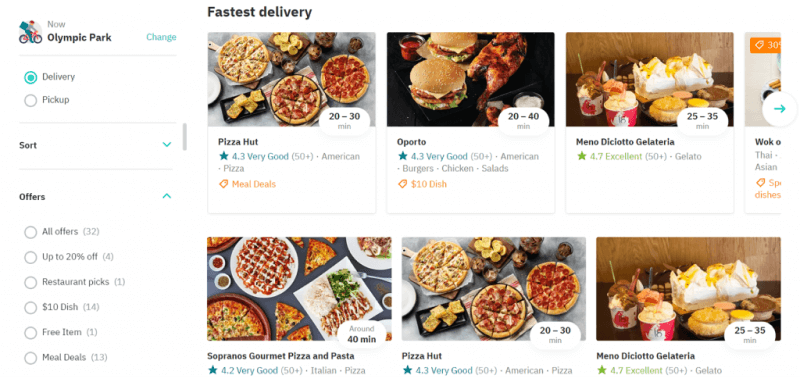 Here’s an example from Deliveroo, an online food delivery business using time badges to help users to make informed purchases based on the time taken for delivery.