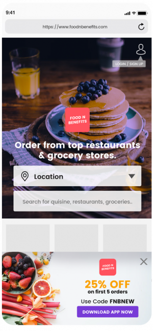 As new users get used to your online services, you encourage them to download your mobile app. Incentivize your users with free delivery or discount on their first app order to encourage them to download your app. Use smart banners on your web pages to convert your web users to mobile app users.