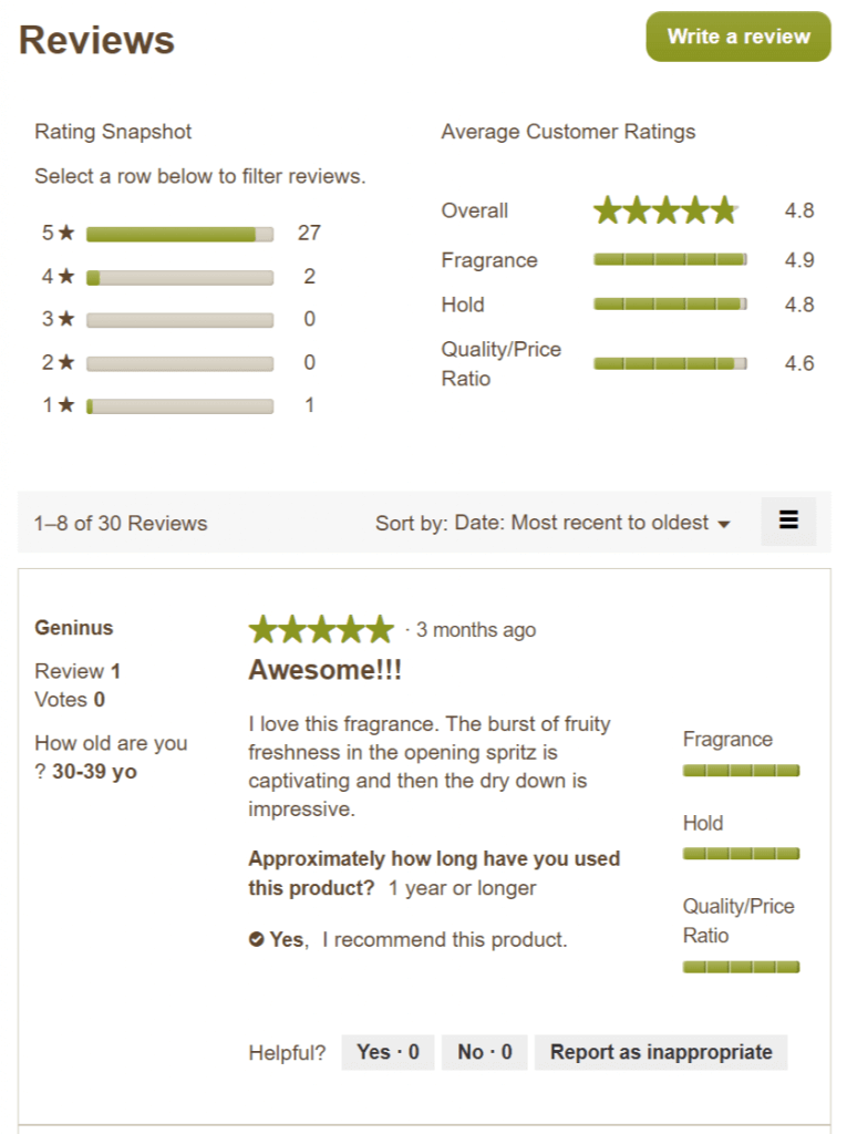 - Show verified buyer badges to indicate reviews that were written by someone who actually purchased the product.
