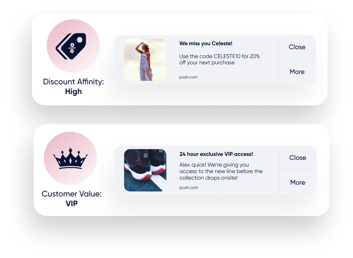 With web push notifications, you can reward, and incentivize customers in the right way, for example, rewarding VIP customers with exclusive access to products, and special offers. Protect profitability and win back customers with personalized offers.